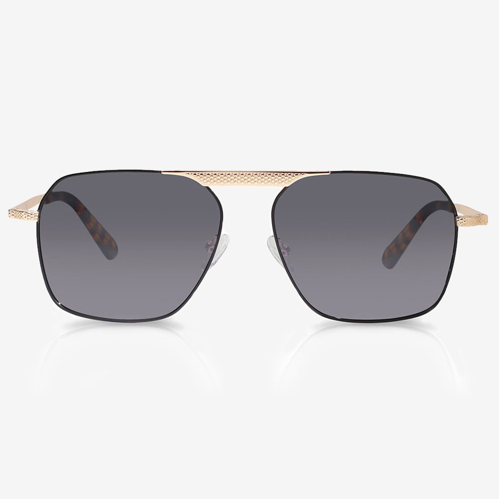 An embellished top bar makes a statement on these metal aviator-style frames. Ultra-thin rims showcase oversized lenses for a classic and simple style.